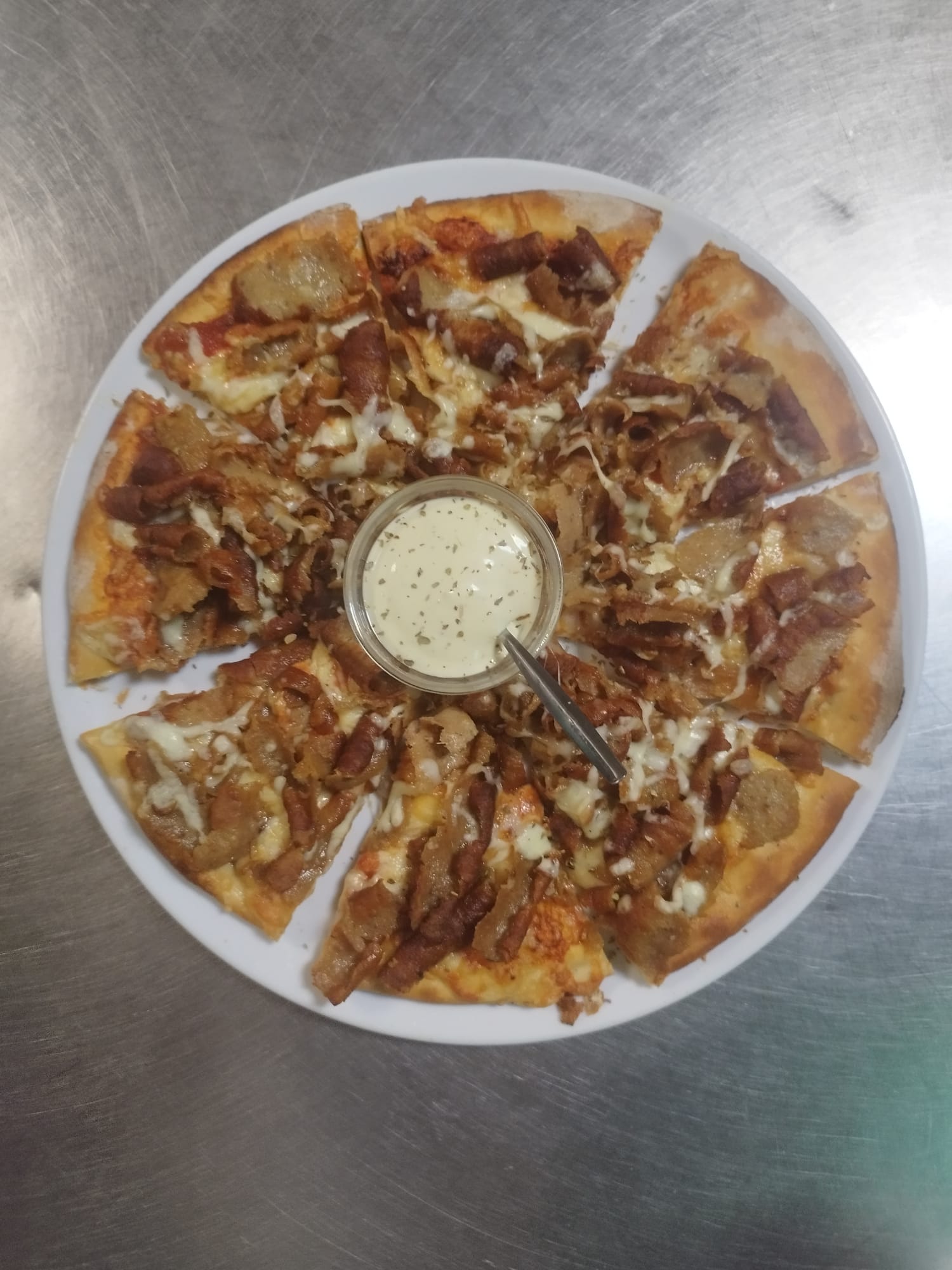 Tomaat, kaas, champignons, paprika, ui, artisjokken en olijven