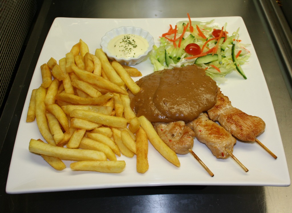 Kipsate – Friet – Salade – Atjar – Gebakken ui – Kroepoek